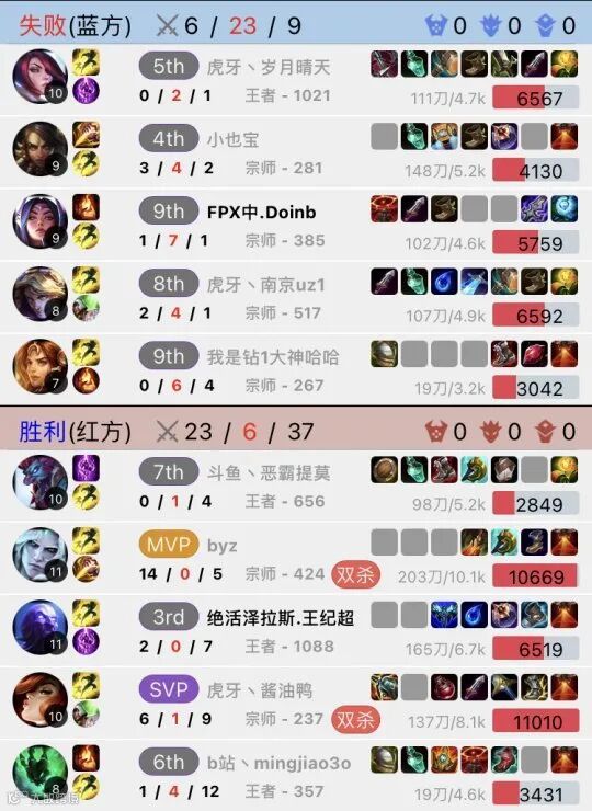 说出来大家可能不信,Doinb在比赛中乱杀的刀妹,就是在峡谷之巅练出来的。为此,他抽出去的奖绝对不止几万块。夏季赛后半程的两轮BO5,其他队伍想必都不敢再放他的刀妹,但在近期的直播中,他的刀妹却因为撞上了Bo而被吃分了。
