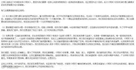 为此《明末:渊虚之羽》的游戏主创,在视频发布不久就做了补充。承认自己非常热爱《血源诅咒》,宫崎英高也是他们在制作硬核魂类游戏时,所能找到的“唯一老师”,因而这款游戏在开发过程中,才对一些前辈多有借鉴。