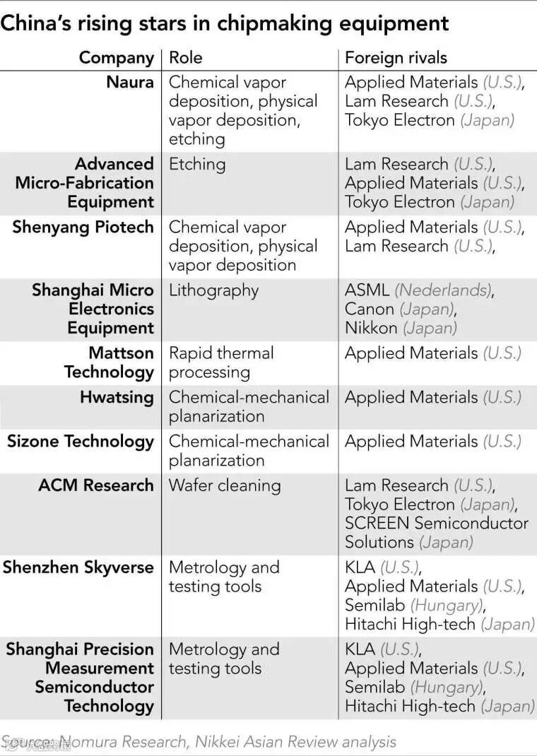 图:中国半导体设备商业务与竞争者 (图: Nikkei)