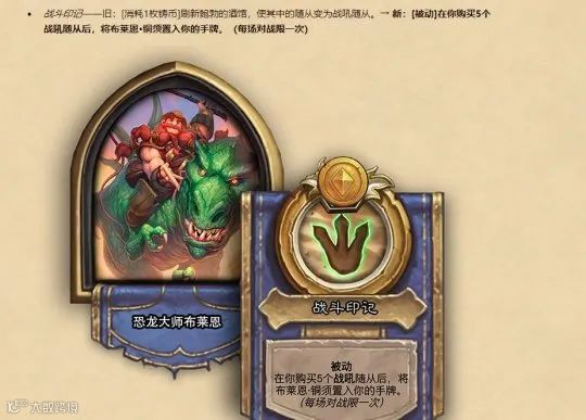 首先要说的就是恐龙大师布莱恩的改动了。这个在更新之前排名靠后的弱势英雄,在改动之后一跃成为了酒馆最强英雄的候选者,原因非常简单,他在前期能够以极小的代价白嫖到5级随从布莱恩·铜须。绝大多数情况下,布莱恩在3费的时候就能够召唤出铜须,在其他对手还是3费或者更低费的时候,自己手里拿到一个5费的随从,这优势可以说已经是相当巨大了。有不少网友就表示,这3费铜须还让不让人玩了?