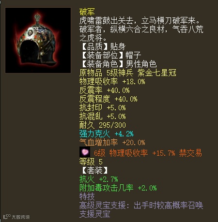5级高级灵宝支援帽子