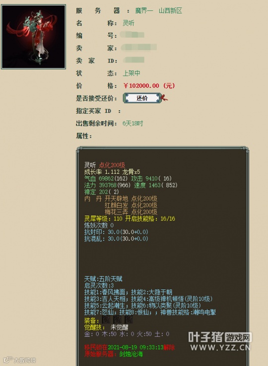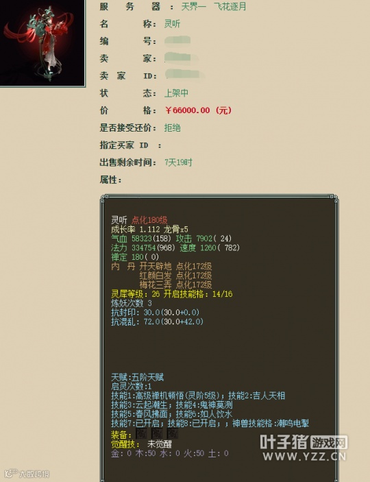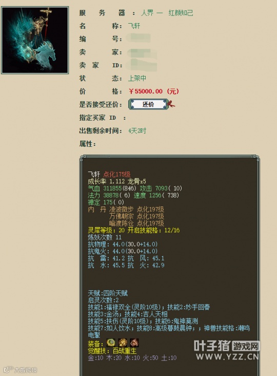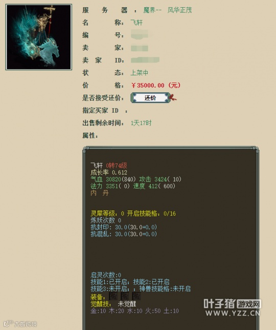 先看飞轩,实话实说,辅助类的宝宝还真是没有攻击类的身价高,看来出场率才是决定价格的关键: