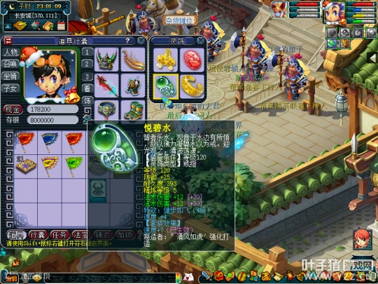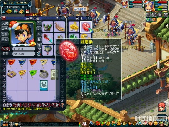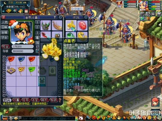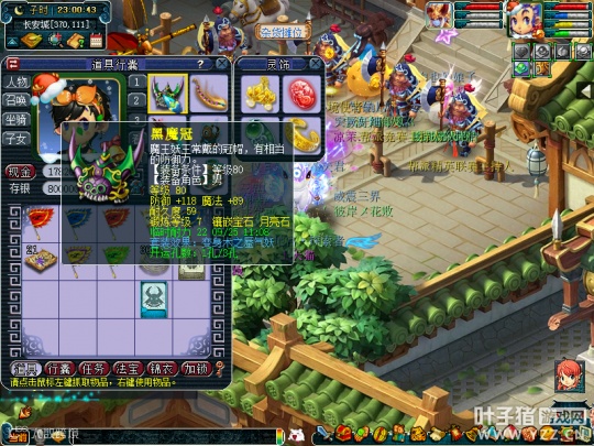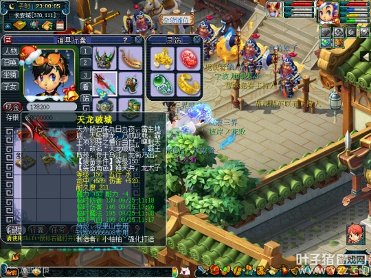 人物等级为175级化圣9,全魔加点,气血属性7128点,防御1309点,速度581点,法伤2223点,携带套装为三件蜃气妖套。
