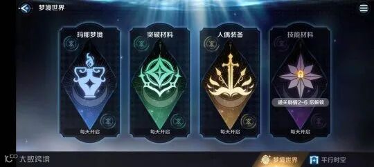在角色突破提高角色等级上限时,需要打专门的梦境副本来获取突破材料。而一般这类的副本都需要同职业的角色,游戏中除去主角这个特殊角色外,一共有6个职业,一个副本里能刷两个职业的突破材料。而此时问题又来了,比如我想刷刺杀型角色的材料,如果我不搭上另外两个破坏型或者刺客型的角色,就会不够输出击杀boss,那我就必须浪费资源在其他不想练的角色上,这或许是制作组需要关注的一个问题。
