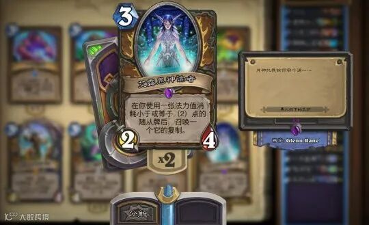 暴风城新卡艾露恩神谕者,可以提供给超生德提供源源不断的场面。不过这张卡基本上只能够作用一到两个回合,任何术士都是会优先解掉它的。因此我们的策略,是绝对不要裸下这张卡,要配合异教低阶牧师或者前沿哨所来搭配使用。只有在干扰到术士下一个回合或者本回合节奏的时候,我们才可以打出这张卡。