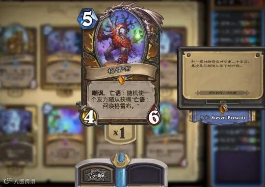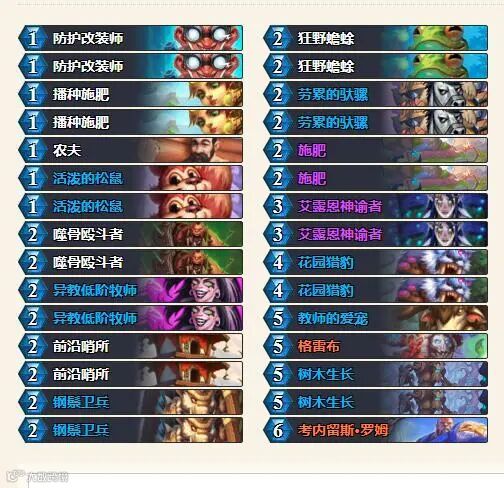 有些玩家对于卡组里的两张橙卡有所争议,不过小编认为这两张橙卡都是非常不错的。在目前环境当中沉默方式不多的情况下,格雷布可以持续给对手施加场面上的压力。它4-6的身材也是比较不错的,对于术士来说非常头疼,一般来说术士需要几张解牌才能够解掉这个格雷布。