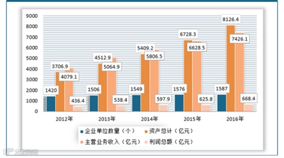 近年来,我国中药行业发展迅速,企业单位数量,行业资产,企业主营业务收入和利润均稳步增长,截止2016年,我国中药行业规模以上企业数量为1587个,中药行业总资产达到8126.4亿元,中药行业主营业务收入为7426.1亿元,利润总额为668.4亿元。