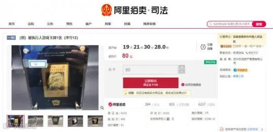 当前这张“20周年纪念版青眼白龙”金卡的起拍价为80元,法院官方预估的成交价为100元。之所以价格如此低廉,主要还是因为法院没有鉴定证书,无法证明这张卡牌的真伪;但绝大多数热衷游戏王卡牌的收藏者们,想必都不建议尝试一下竞价。