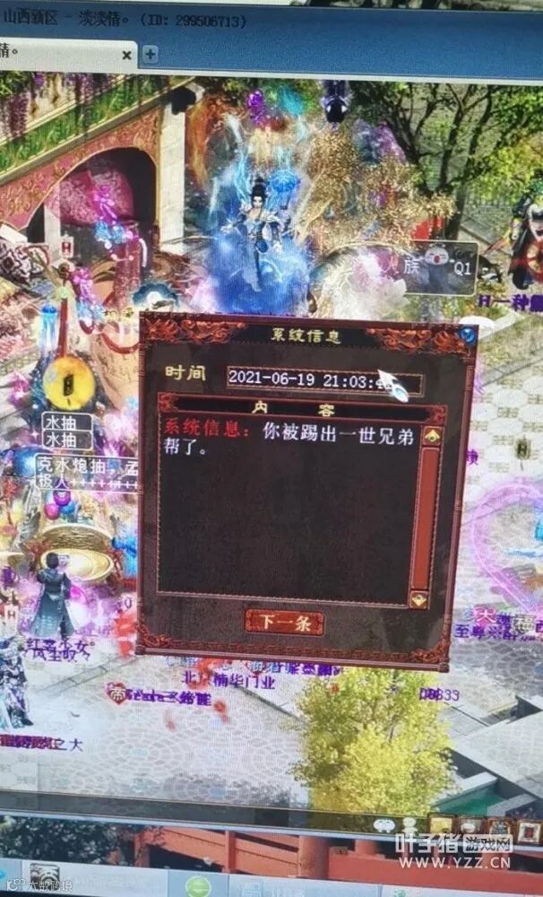 淡淡情玩家收到消息后,去和当时的帮派管理人员确认了一下,原来是因为没有参加帮战,所以被踢了。