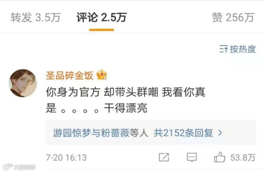“你身为官方 却带头群嘲 我看你真是 。。。。干得漂亮!”