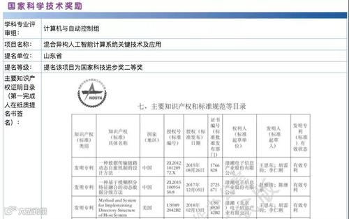 浪潮电子的《混合异构人工智能计算系统关键技术及应用》项目由山东省提名,该项目被提名为国家科技进步奖二等奖。