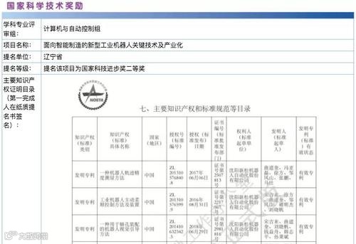 新松机器人的《面向智能制造的新型工业机器人关键技术及产业化》项目由辽宁省提名,被提名为国家科技进步奖二等奖。