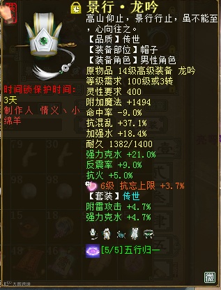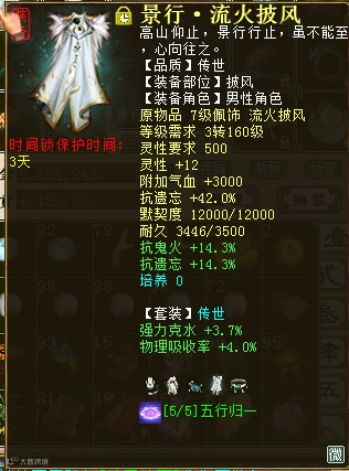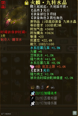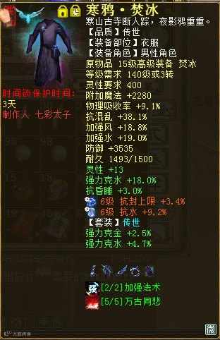 讲真,609的寒鸦或者残梦炮,日常伤害着实和克火有些差距。所以这两套装备很多人都是一套克火,一套其他克的万古。但是五行归一的出现在一定程度上统一了玩家自身的克,日常克也可以和PK克相同,且五行归一较克火除了自身五行属性上不同,提克效果是一样的。今天就来看一位传世景行和传世寒鸦于一体的四阶水法炮,看看他的装备搭配和伤害效果如何!
