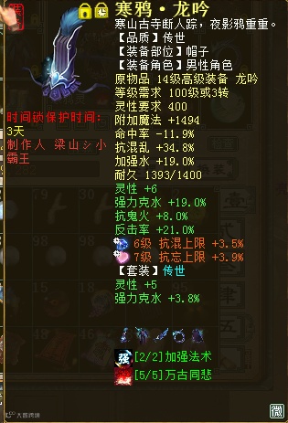 但是PK方面,输出则大多都会选择寒鸦或者残梦的万古套装效果。原因这里就不过多赘述了,都是老生常谈的内容。那么很多玩家都会有两套装备,一套日常和一套PK装。