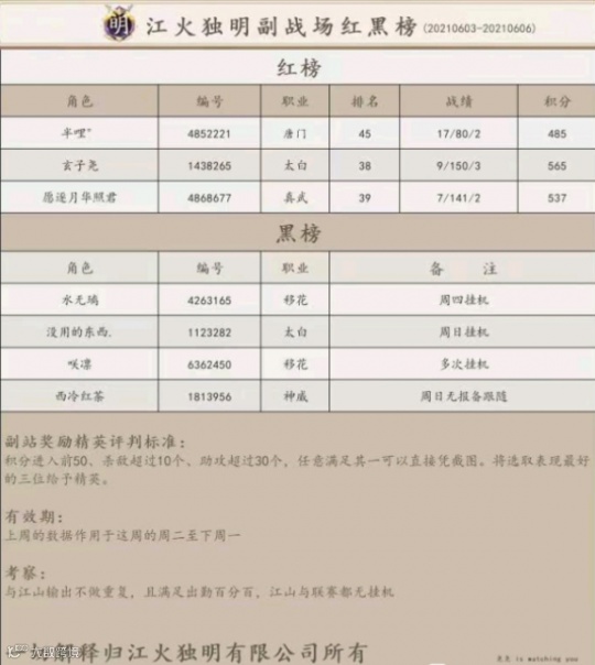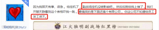 最近有这么一位玩家曝光了江火独明的骚操作,除了设置红黑榜之外,还在下面补了一句“江火独明有限公司”。这位玩家也是调侃了一番:你这公司不知道给不给员工发工资啊?