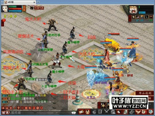 第一场战斗的BOSS为流沙怪,各只怪物的属性技能亲测如下: