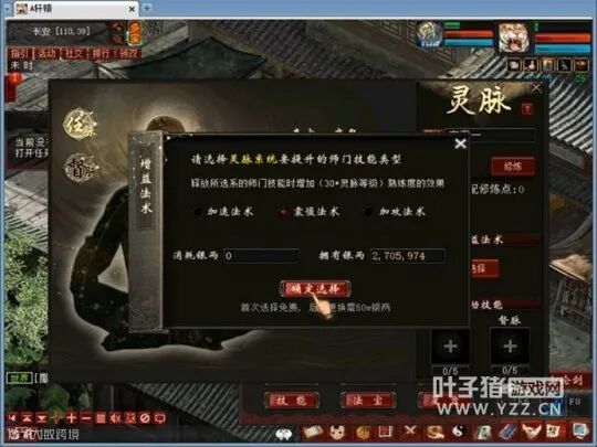 打开人物属性面板上的灵脉系统,大家需要从任脉第一个穴位“廉泉”开始依次修炼,此时可以选择通过灵脉获得增益的法术类型,选择后即可在战斗过程中获得对应师门法术熟练度的加成。首次选择技能类型是免费的,之后更改则需要消耗银两。