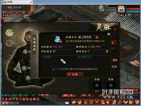 每个穴位在第一次突破后,还可以进行相应穴位的属性炼化,这个有点类似于星盘炼化的操作,但灵脉穴位的炼化分为普通炼化和超上限炼化两种,最终穴位属性的差别就来自于这两种不同的炼化类型。