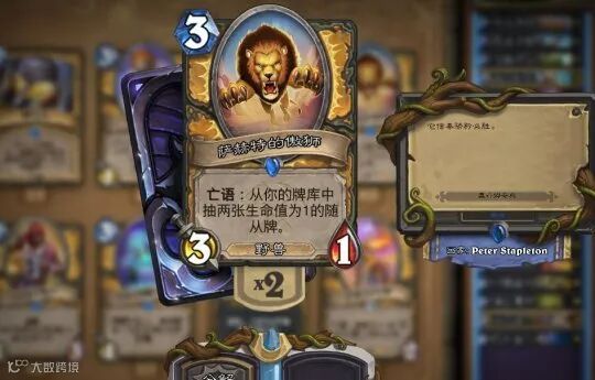 原本大多数奇数骑是要带神恩术的。但是在这套卡组当中,由于我们并不追求前期的快攻速度,因此神恩术的重要性也就下降了不少。取而代之的是萨赫特的傲狮,这张卡同样可以起到过牌的效果,而且由于其亡语的原因,不少玩家在真正对战的时候可能会有意不去打,也能够起到偷伤害的效果。