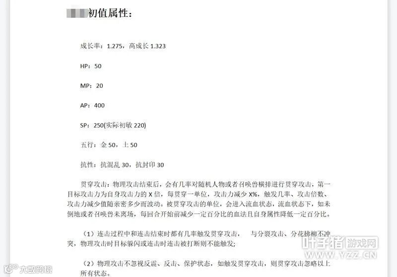 咱们暂时给它的攻击方式取个名字吧,叫做:“贯穿攻击”,暂时的哈。叫起来方便。那么整体的宝宝属性和技能图就是以下这样的。