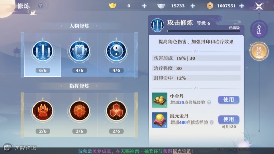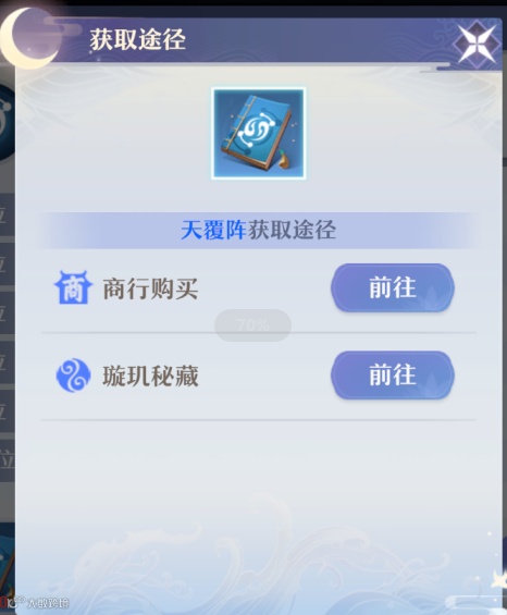 阵法主要的获取途径是每日的璇玑密藏和商行购买,璇玑密藏中获取的阵法书为随机想要集中提升阵法还得靠商行购买,这里推荐喜欢打PVP的朋友们可以考虑尽早提升阵法等级。