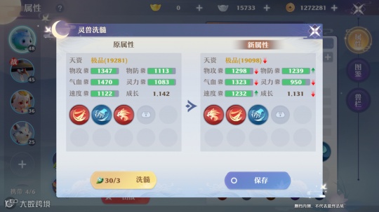 由于变异后的灵兽洗髓所需的洗髓丹会翻倍,因此洗髓丹可以说是大家都缺的资源。虽然洗髓丹产出本身也很多,但只要你开始洗资质,它很快就会花光。