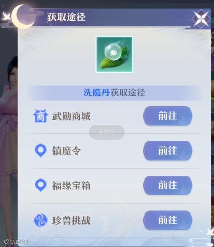 洗髓丹的获取方式主要是每日的镇魔令和福缘宝箱,也可以用武勋兑换,不过建议武勋先攒着换高级灵决(技能书)。如果实在急着用的话可以用银币购买(一般不推荐)。建议平民玩家平常省着用留着洗高级灵兽即可。