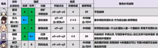 更为拉胯的就是雷系角色方面了,仅有北斗由于魔王武装的缘故,获得了A+评价,而被吃瓜群众无脑吹的四星战神雷泽还是沦落到了双A级,三线地位,比较适合平民玩家开荒使用。
