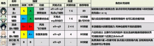 风系角色方面,温迪依旧牢牢维持着原神人权卡的地位,强悍的聚怪能力,让他获得了双S+评价,魈的站桩输出能力获得S级评价,而琴也因为两位风系角色的强度,作为混搭的万金油双风配件,被评价为S级强度。