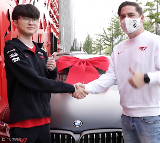 随后Faker还收到了来自于赞助商的礼物宝马M550i,他此前所考的驾照,也终于有了用武之地。自此,战队包办了Faker的衣、食、住,如今金主爸爸又解决了他的出行问题,Faker的省kou钱men之路一片光明。