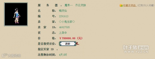 近日逛藏宝阁的时候看到一个叫价78万的精灵仙,大概看看连宝宝都没有几只,竟然敢标如此高价,还有超过250+的收藏,凭什么?一起来看看细节先!