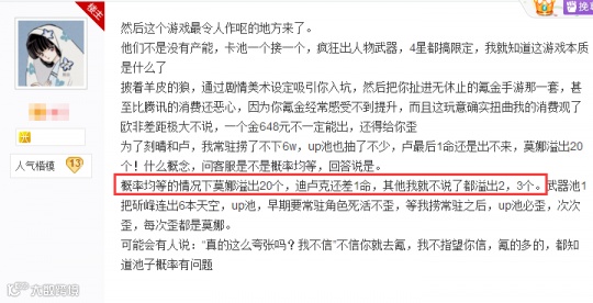 更为致命的是,作为迪卢克的真爱党,这位大佬在氪穿普通池的时候,还遭遇到了系统满是恶意的针对,在溢出20个莫娜的情况下,才集齐了一个5命迪卢克,堪称年度最惨非酋玩家。