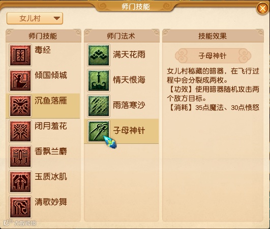 还记得上一年四月份的门派调整,女儿村增加了单体技能“子母神针”,然后“磐石”效果微微提高,这次的女儿村门派调整除开单体技能的增加外,可以说没有什么调整了,但是现在任务中,“子母神针”的使用率很低,除非有一些关键的对位点杀,可能会有一点使用率,更多的时候都是秒秒秒。