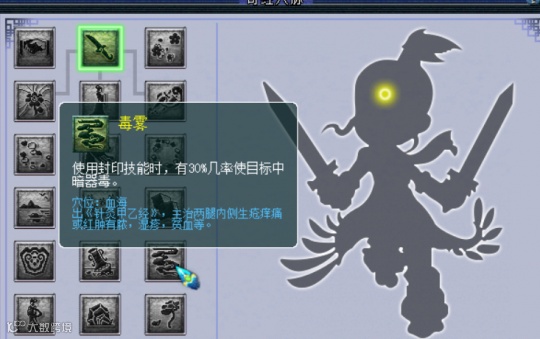 毒雾这个技能也需要调整下,30%的其实比较尴尬,毒经脉的女儿,封印不是不可以用,但是由于杏花会导致10%的封印命中下降,所以对于普通买不起三封印的玩家而言,在非不要的情况下,都不会选择封印,如果说只是为了毒的效果,还不如直接丢个飞镖实在。