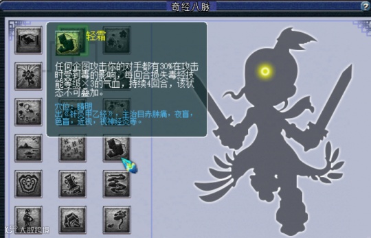 轻霜这个经脉,也是比较好用的一个经脉,之前在帮战的时候,打一些高级输出队,见过有队友点这个经脉,配合普陀山、无底洞的恢复,还挺恶心别人,前面硬推推不进去,中后期慢慢把局势扭转过来。这个经脉感觉可以增加一个抗性的效果,如果触发了“毒”的影响,同时提升自己5%的法防和防御,最多只能叠加2次,持续1回合。
