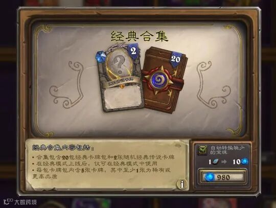 但是紧接着玩家们就看到了一个令人非常不爽的东西,这就是商店当中的全新卡包了。目前商店上线了两种合集,一种是售价980宝珠经典合集,另一种是售价1280的金色经典合集。单论价格来说,小编觉得并不是十分的离谱。但是需要注意的是,这两个合集开出来的卡牌仅能够在经典模式当中使用,这种局限性就使得两个合集的卡包直线下降。