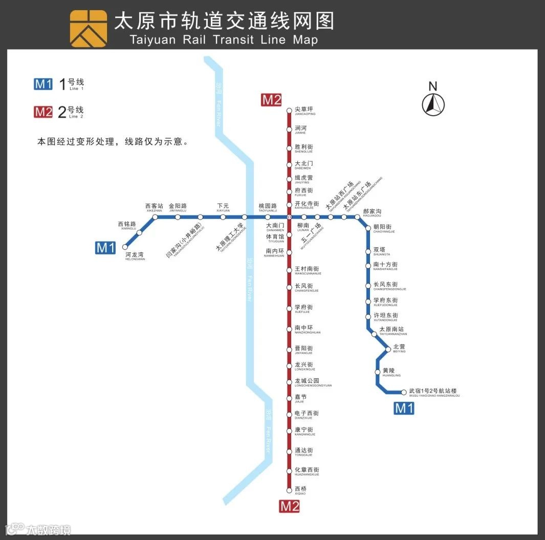 太原地铁1号线一期全长28.74公里,设车站24座,起点为河龙湾站,终点为武宿1号2号航站楼站,途经万柏林区、迎泽区、小店区,串联起太原汽车客运西站、太原火车站、太原南站、太原武宿国际机场等重要交通枢纽,在大南门站与2号线实现换乘,太原地铁由此进入“换乘时代”。