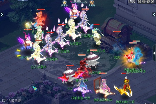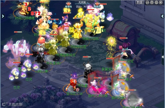 打到这里很多朋友都觉得葫芦兄弟已经没得打了,但是葫芦兄弟没有放弃,全队打上颠倒五行,强行躲避对手的小死亡和瞬法须弥。30回合使用真阳战笛的力劈平A将对手DT击倒打断了对手进攻的节奏。趁机将全队状态补满。