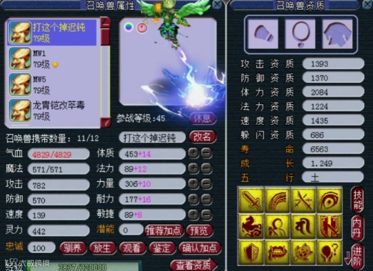 猪妹在梧桐直播间看见了一只14技能的翻页神马净台壁垒雷鸟人,这宝宝攻资1393,防资1370,成长1.249。这宝宝应该是精锐为数不多的神马净台宝宝,不但技能多,成长也ok,就是这个迟钝可能有点小尴尬。