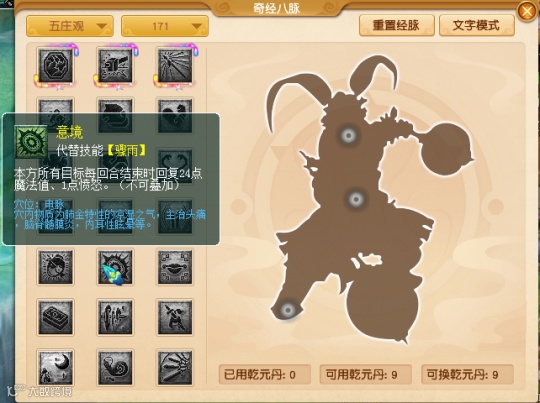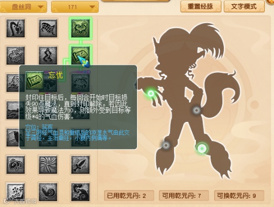 第二层“忘忧”经脉:配合封印让敌方罚站,同时增加打蓝效果。