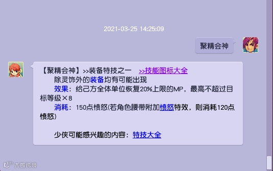 要是再配合一个全体回蓝的特技“聚精会神”,双盘丝想要将两个人物单位的蓝量打空就有点难了。如果一速配置一个金刚怒目转愤怒,聚精会神还是很容易用出来的。