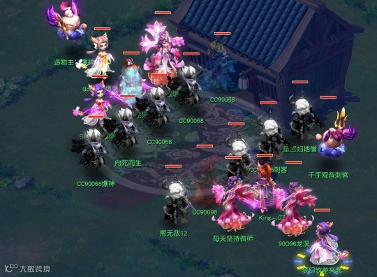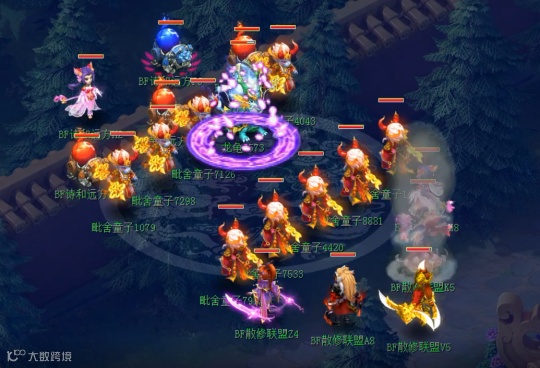 这套阵容在全民PK上用过,对手是女儿盘丝的打蓝阵容。40回合之后,大唐和天机城用灵宝轰炸可以打出成吨伤害。