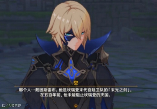 最终,主角又与赶来查看深渊遗迹的另一位旅行者相遇,并从他口中得知了戴因的真实身份,坎瑞亚末代宫廷卫队的“末光之剑”,未能阻止坎瑞亚灭国的强者之一。此外,另一位旅行者还警告主角,不要参与到戴因的行动,不要去阻止深渊教团的肆虐。