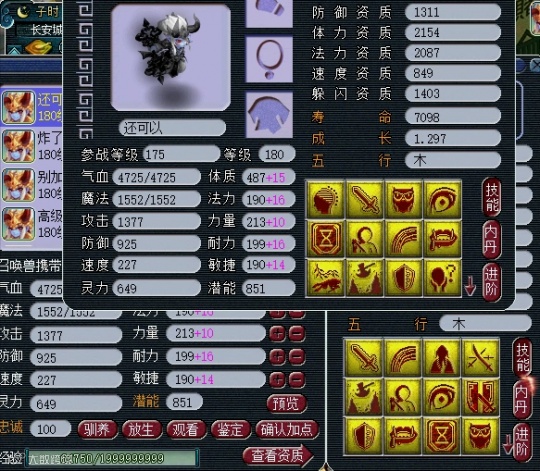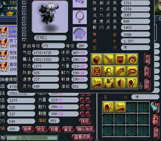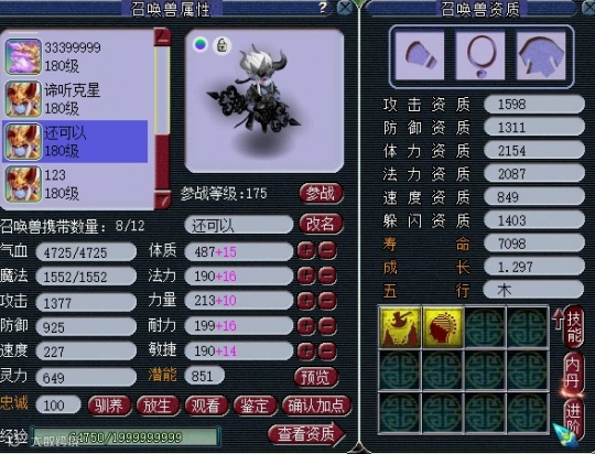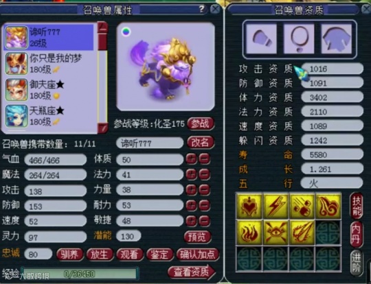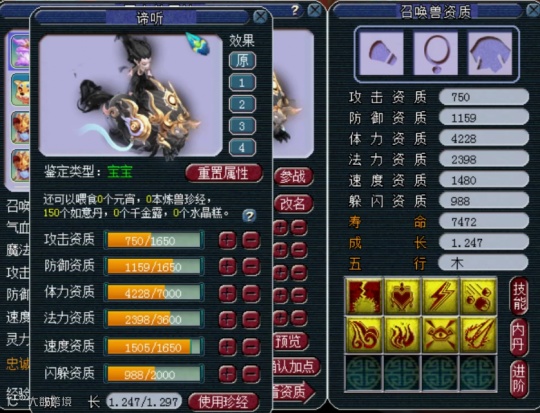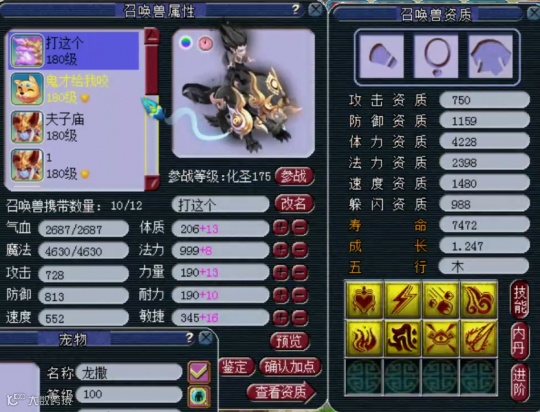 这宝宝还是少了高级神佑,由于老板想给这只宝宝打上神马兽诀,所以核心技能一定要齐全。