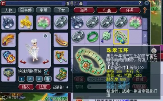 一条新出的100级愤怒水清腰带,防御+61,气血+253。