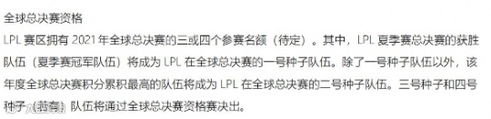 在英雄联盟官方刚刚发布的2021赛季英雄联盟职业比赛比赛规则(2021年3月版本)中,春季赛和夏季赛季后赛,队伍将根据最终排名获得全球总决赛积分。具体的积分获取规则如下: