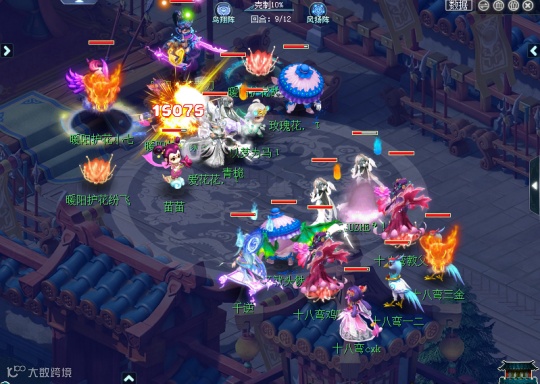 果然,少了气血回复的支持,暖阳护花的另一位封系作为五雷咒必中单位倒地也是预料之中的了。但是出乎意料的是,暖阳护花的化生寺竟然被十八弯的一只力劈以1W5+的输出直接带走,可以说到这里基本上战斗进入到最后的阶段了,暖阳护花输掉战斗是迟早结果了。