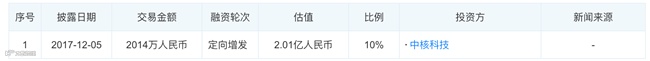 2017年12月,以每股5.5元价格,发行367万股,募集资金2014万元。投后估值2.01亿。除息除权价格4.25元。