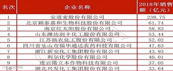 2018年5月16日,2018年中国农药行业销售百强企业榜单在“第五届农药 行业经济运行分析会”上隆重发布,公司以60.832亿元的销售业绩(年度销售)摘得 第二名。