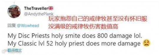 不仅在国服是这样,在外服情况也差不多。红土骑士在MDI上大放异彩,在外服引领了一大波潮流,跟风问题也就接踵而至。但外服玩家更关注的点在于用奶妈来做纯治疗玩法的话,治疗量会非常低。有玩家吐槽,自己的戒律牧奶量还不如怀旧服里满级的戒律牧高。